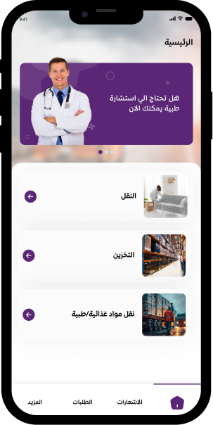 يوفر التطبيق خدمات نقل متنوعة تشمل نقل الأغراض العامة، نقل المواد الغذائية والطبية، وخدمات التخزين.